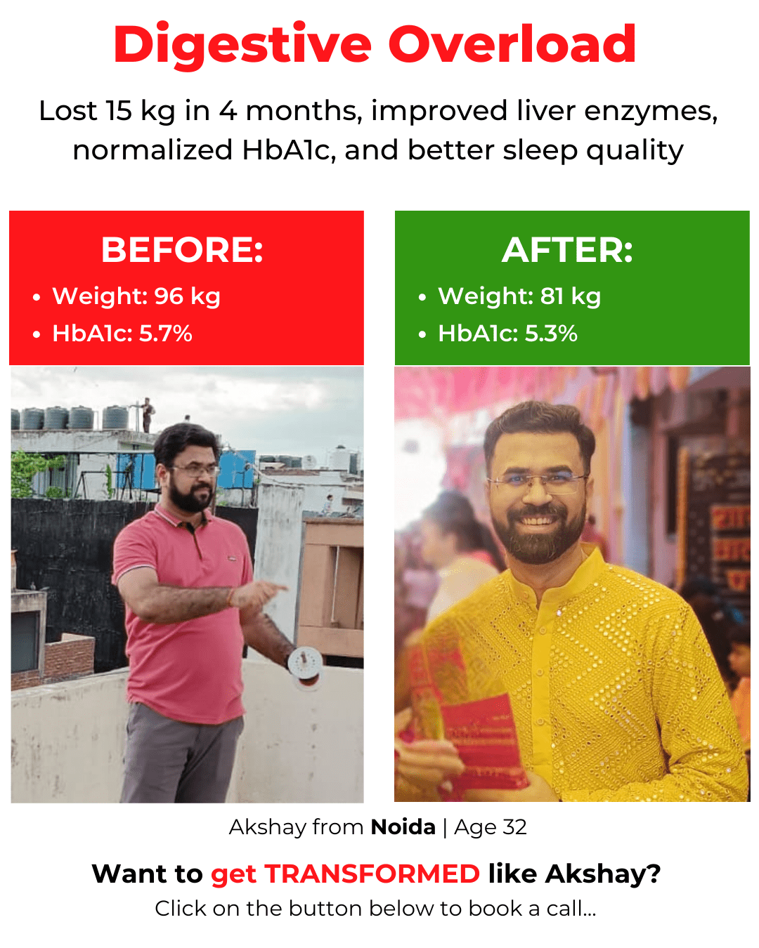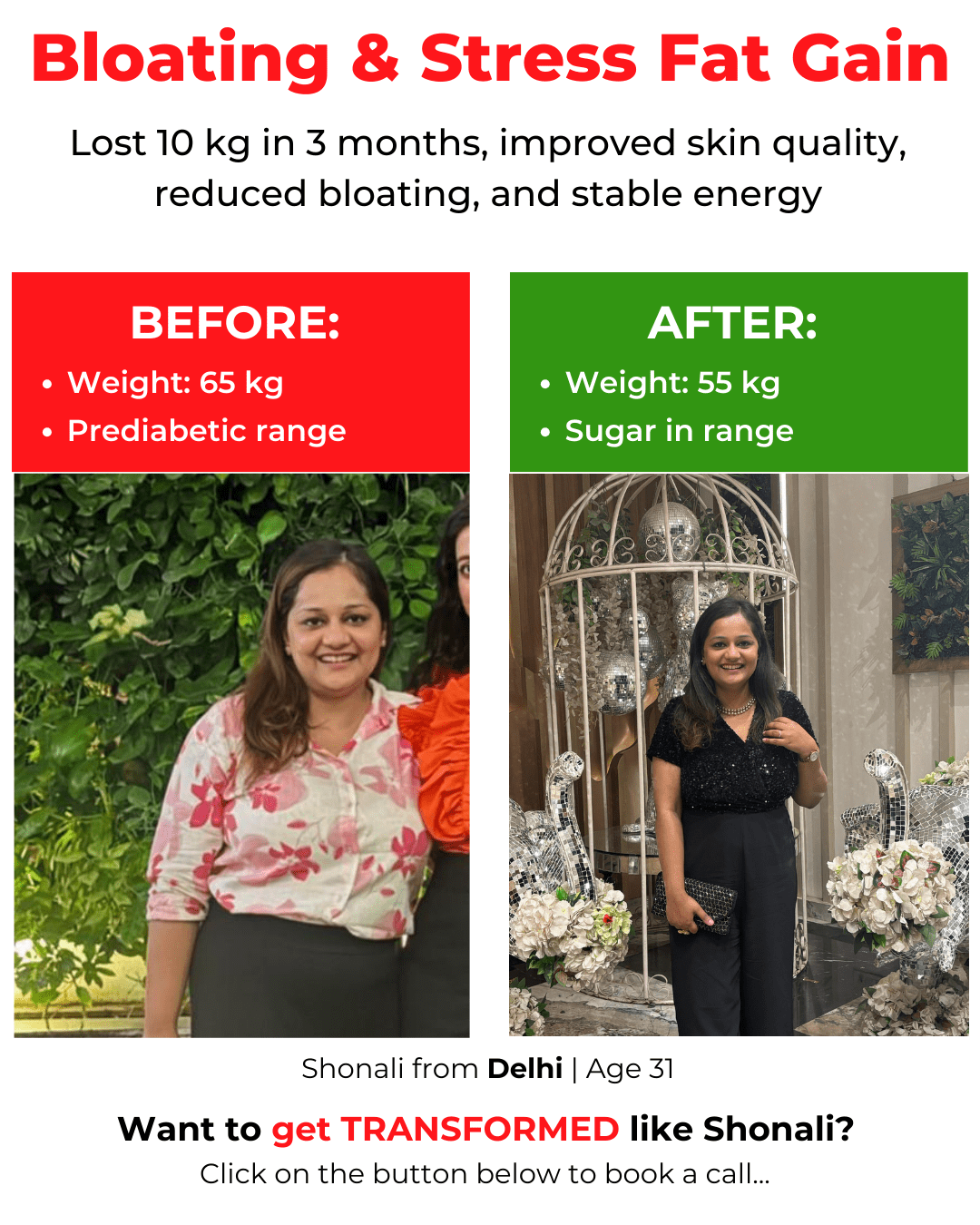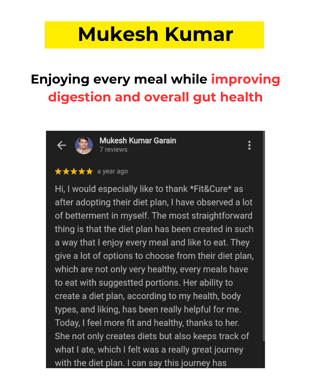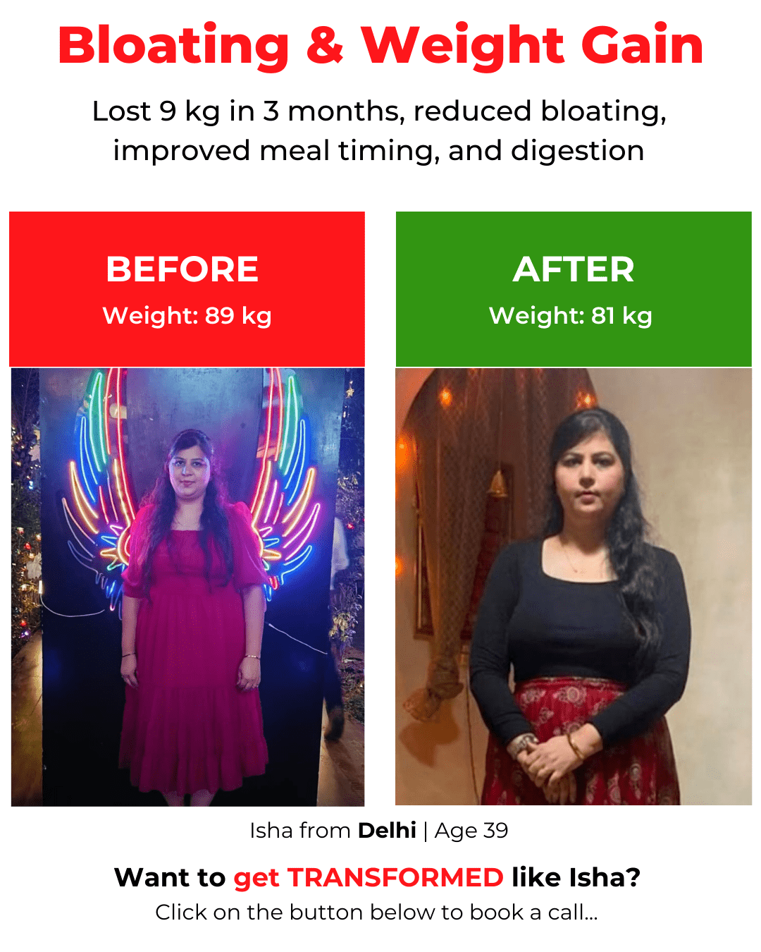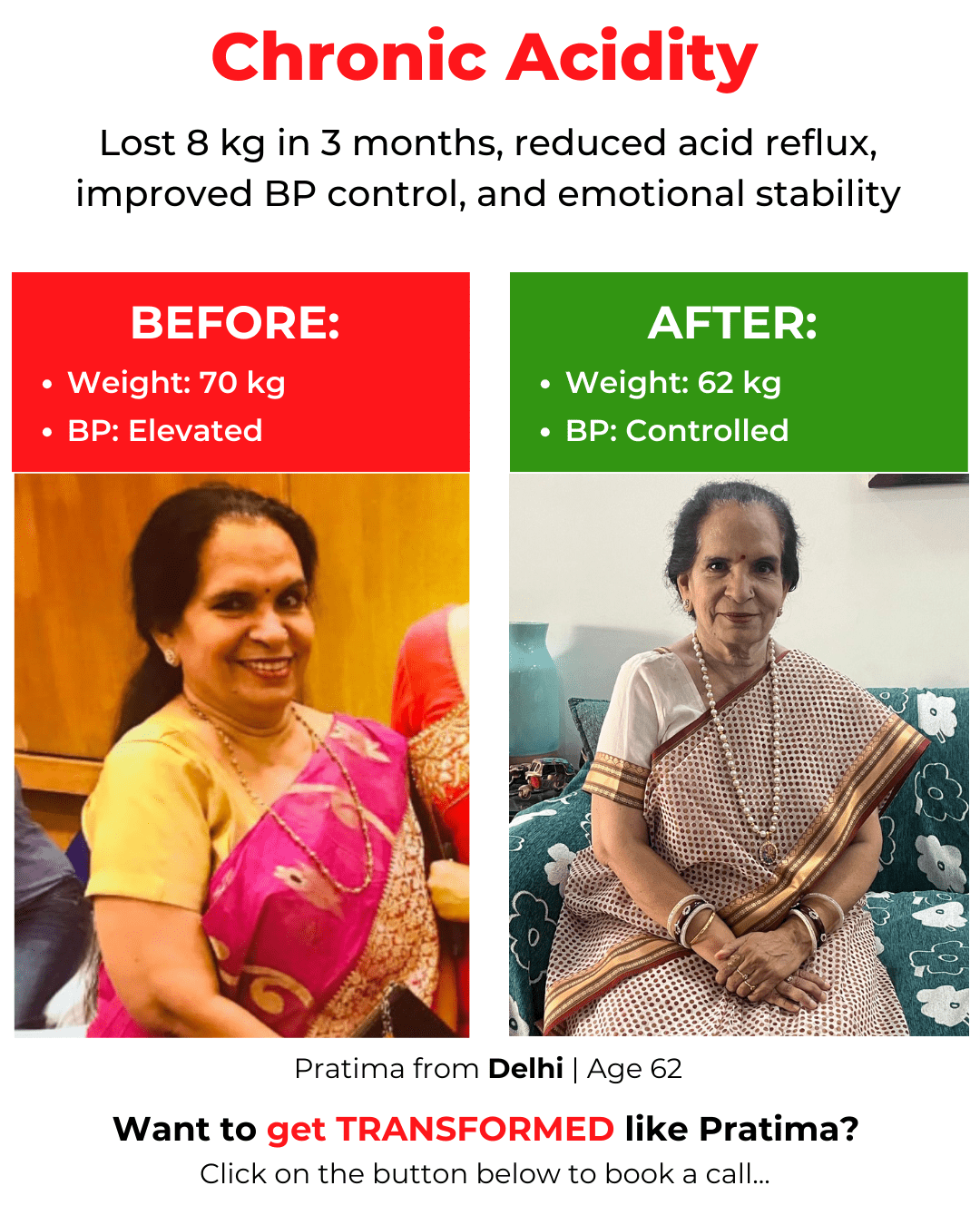 I help urban professionals (30–45) restore gut health, eliminate bloating and acidity, and lose 8–15 kg in 12 weeks using my G.U.T.-C.U.R.E™ Method.